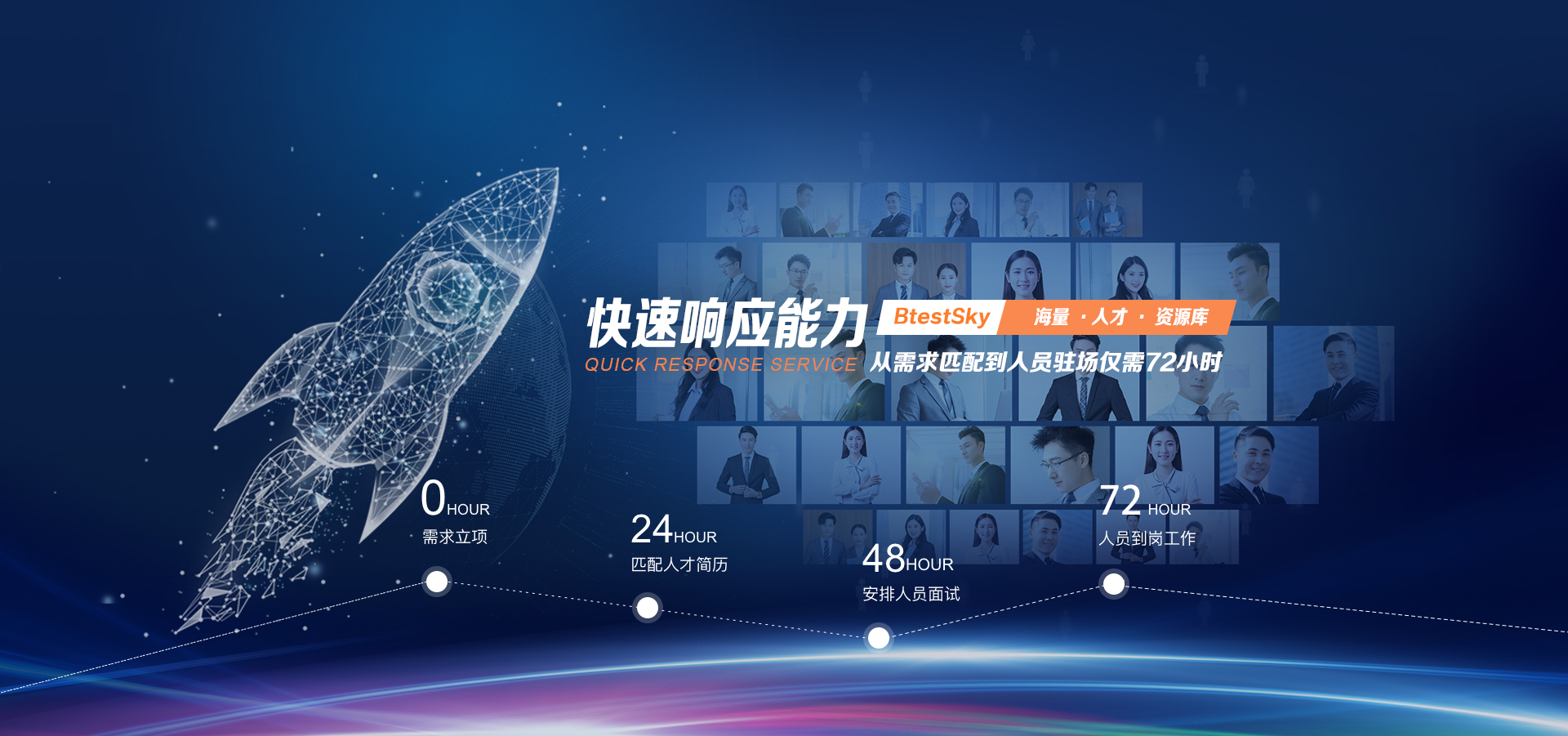 ? 招聘團隊100人以上,24小時推薦簡歷,36小時內復試,72小時入職